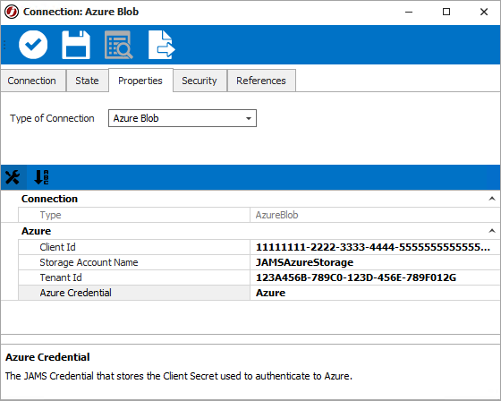 Before you create this Connection, create a Credential in JAMS to store the Client Secret value from Azure in the Password fields. The Logon As field can be left empty. See Working with User Credential Definitions for more information.